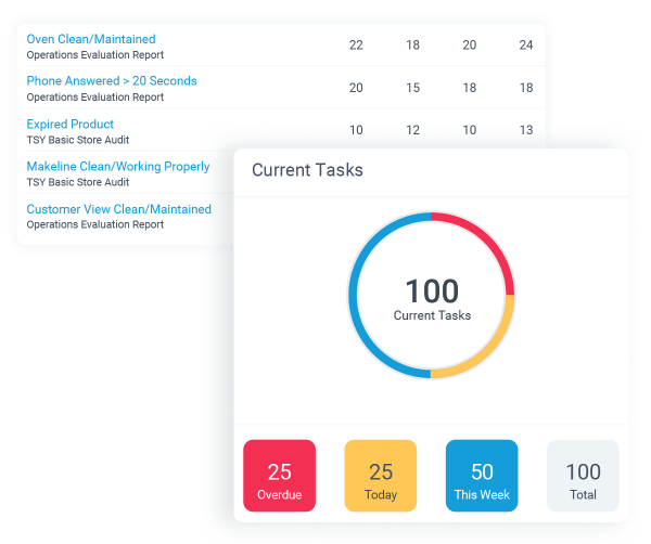 Verify whether or not tasks are being completed in every store, drill down into each task to better understand quality and details, and view real-time reports for each store, district, or operation-wide.