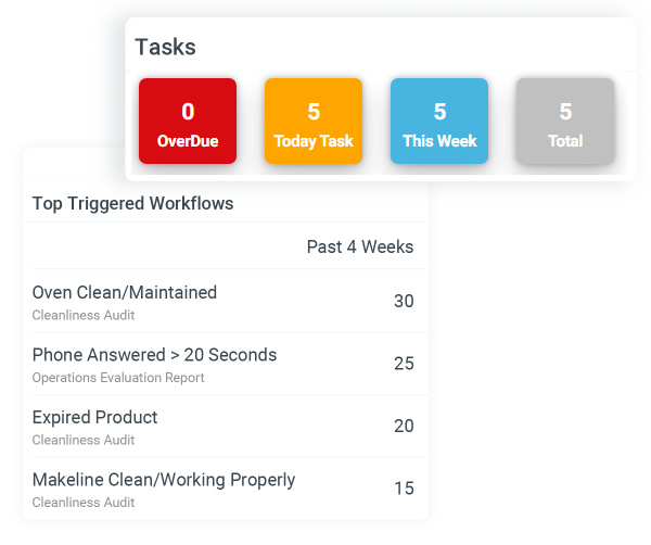 Operations leaders schedule recurring and ad hoc work that can be automatically assigned to employees. When issues arise, staff are instantly assigned follow up tasks and corrective actions, and managers receive alerts and status updates.